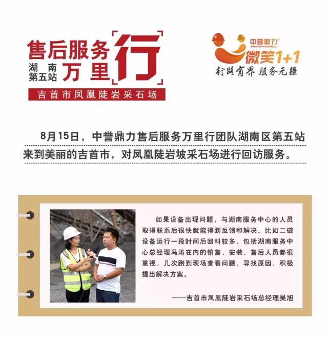 當問到對鼎力湖南服務的工作有什么意見時,負責人吳旭表示,如果設備出現問題,與湖南服務的人員取得聯系后很快就能得到反饋和解決。比如二破設備運行一段時間后回料較多,包括湖南服務總經理馮濤在內的銷售、安裝、售后人員都很重視,幾次跑到現場查看問題,尋找原因,積提出解決方案。