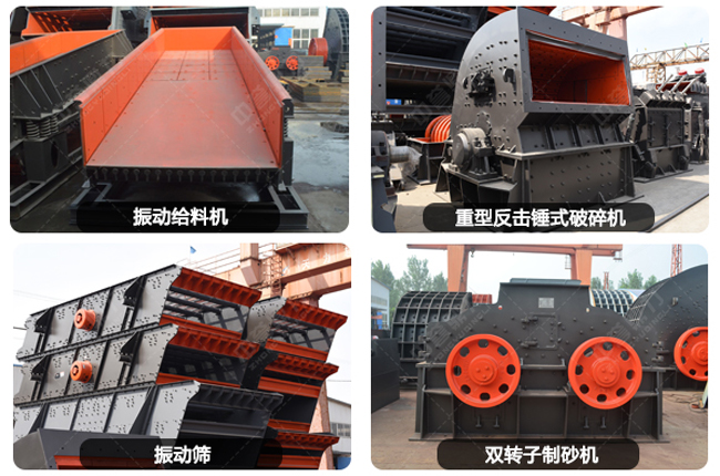 1、喂料機(jī):常選擇震動(dòng)喂料機(jī),可將原料勻稱、持續(xù)地喂給初碎機(jī)械,多與初碎機(jī)配置在一起運(yùn)用。