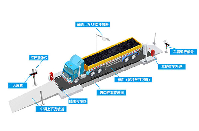 自動過磅稱重系統地磅過磅流程為:車輛進廠通過車牌識別系統自動采集車輛信息,綠燈亮起,道閘桿打開,車輛過磅,LED屏顯示車輛相關信息。