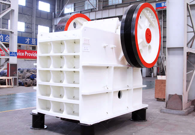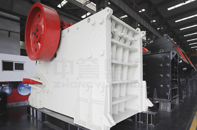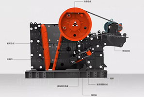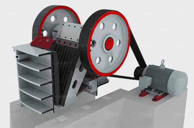 電機(jī)帶動(dòng)皮帶跟皮帶輪,通過(guò)偏心軸讓動(dòng)顎進(jìn)行上下運(yùn)動(dòng),當(dāng)動(dòng)顎上升的時(shí)候,肘板會(huì)和動(dòng)顎之間的夾角變大,從而推動(dòng)動(dòng)顎板往固定顎板接近,同時(shí)其中的物料會(huì)被壓碎或劈碎,達(dá)到破碎的目的,當(dāng)動(dòng)顎下行時(shí),肘板和動(dòng)顎之間的夾角會(huì)變小,動(dòng)顎板在拉桿、彈簧的作用下 ,離開(kāi)固定顎板,同時(shí)已經(jīng)破碎的物料從排料口排出。