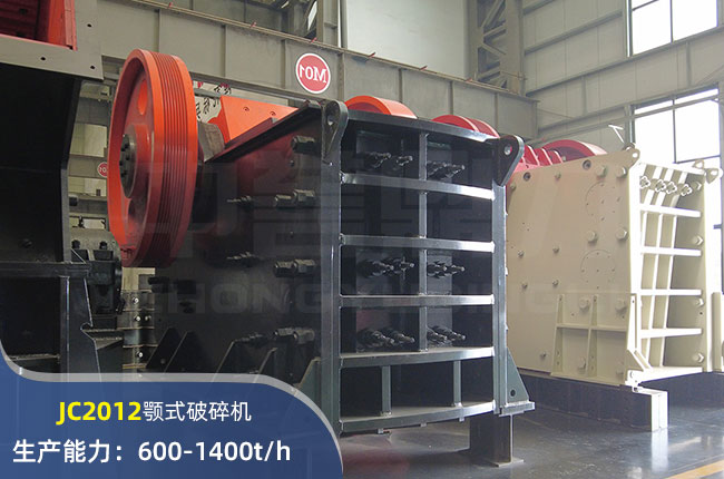 JC2012顎式破碎機進料口尺寸2000×1200mm,進料粒度≤1020mm,出料大小≤175mm,電機功率355kw,時產(chǎn)量在1400噸左右。