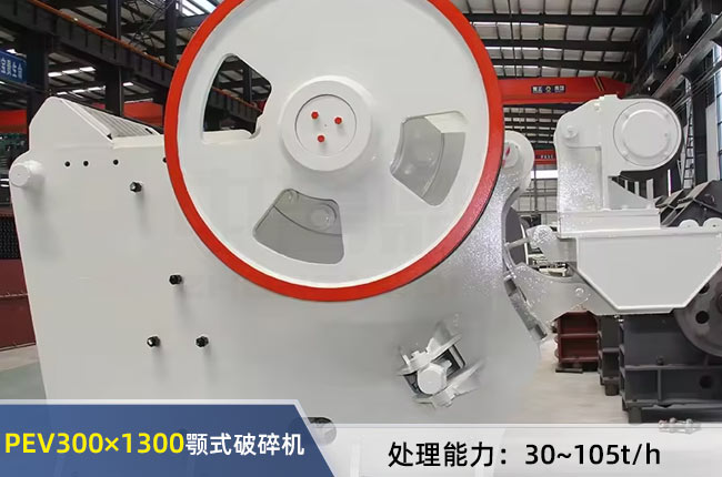 300×1300破碎機是PEV系列顎破機中的一種,允許進料粒度要小于250mm,出20-90mm的砂石料,一小時產量在30-105噸之間,可以配置55或75千瓦的電機,機器重量有11噸,外形長2150mm,寬2390mm,高1590mm。
