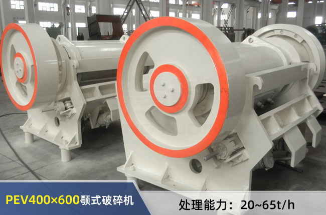 PEV400×600顎式破碎機時產20-95噸,電機功率為30或37千瓦,進料粒度要求<340mm,出料范圍40-80mm,重量是7噸,外形長2500mm,寬1750mm,高1950mm。
