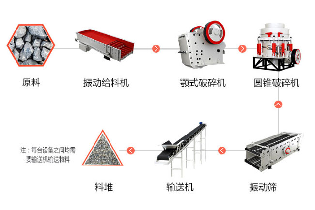 震動喂料機+顎破+圓錐打石機+礦山振動篩分機+制砂設備+皮帶機