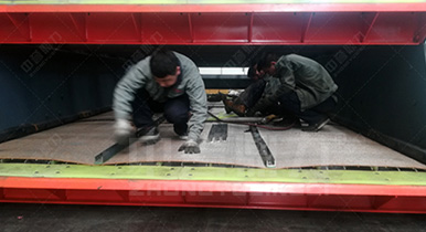 篩箱通過振動(dòng)電機(jī)做相反方向自同步旋轉(zhuǎn),使支承在激振器是的整個(gè)篩機(jī)做直線振動(dòng),物料從入料口進(jìn)入篩箱,迅速前進(jìn)、松散、透篩、完成篩分作業(yè)。