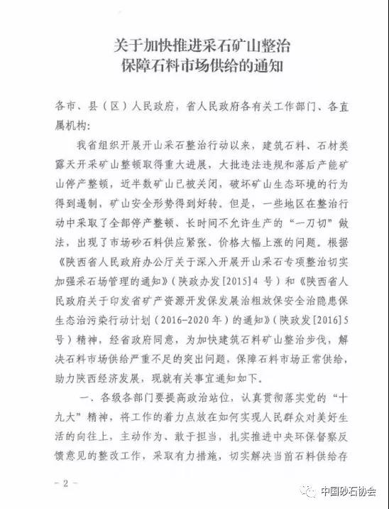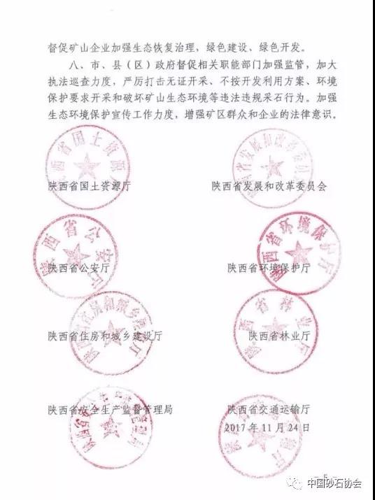 此前,即2017年11月24日,陜西省土資源廳、陜西省發展和改革委員會、陜西省公安廳、陜西省公安廳、陜西省環境保護廳、陜西省住房與城鄉建設廳、陜西省林業廳、陜西省安生產監督管理局和陜西省交通運輸廳八部門聯和發布《關于加快推進采石礦山整治 保障石料市場供給的通知》。為加快建筑石料礦山整治步伐,解決石料市場供應嚴重不足的突出問題,保障石料市場正常供給,助力陜西經濟發展。要求: