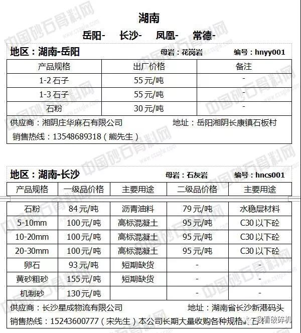湖北地區:黃石砂石價格下調2元/噸。