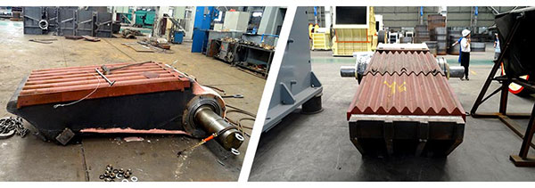 破碎機(jī)動(dòng)顎板裂紋處理方法:1、先觀察裂紋大小、形狀等狀況,如不是否有裂紋,可先用煤油對不部位進(jìn)行擦洗,再用或許其余顏色相差比較大的粉末涂之,停一會(huì)就可以看到裂紋狀況;2、標(biāo)示裂紋位置,在裂紋的兩頭或里端打一個(gè)約6毫米的小孔,孔深度略過裂紋深度;3、焊接坡口,可憑借裂紋輪廓狀況滿意的坡口,通常選擇一面焊接"v"形或兩面焊接"X"形;4、焊條材料,視動(dòng)鄂的材料而定,盡可能選擇與動(dòng)鄂質(zhì)材相近的材料,
