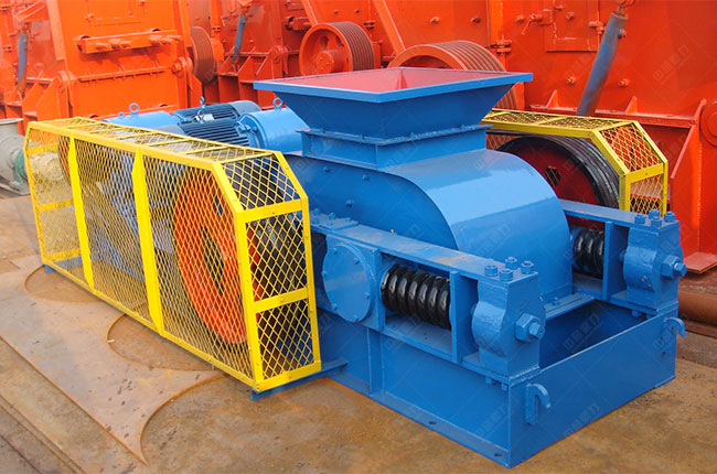 輥式破石機:物料落在兩個彼此平行而旋回反之的輥子間(相向轉動),物料在輥子表觀的摩擦力作用下,被扯進轉輥之間,獲取輥子的擠壓而處置。