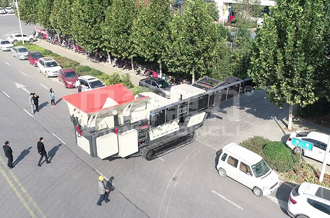 輪胎式移動(dòng)碎石機(jī)適合在平坦的道路上行走,需要半掛車頭進(jìn)行牽引移動(dòng)轉(zhuǎn)場,需要簡單的整理平整地面就可進(jìn)行碎石作業(yè)。