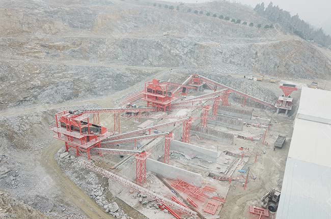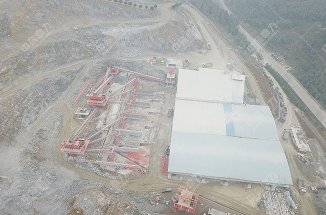 該生產線由中譽鼎力設計安裝,項目中用到了ZG1550給料機、PCZ1615重錘破、PCX1622整形破 、ZSJ1218雙轉子砂制機、 3YKZ3070振動篩、 2YKZ3070振動篩,可以滿足時產1000噸的砂石骨料生產規模。