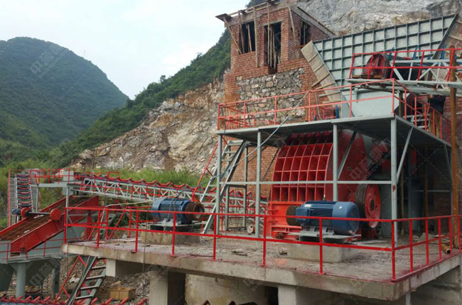 該時產(chǎn)800噸的石灰石破碎生產(chǎn)線是中譽(yù)鼎力建造的,采用的是PCZ1615重錘破、PCZ1216錘式破碎機(jī)、3YKZ3070振動篩。生產(chǎn)80-200mm、40-80mm兩種規(guī)格的石子料。