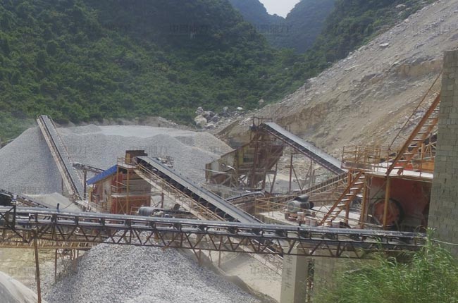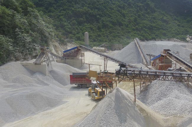 頭破采用錘式破碎機,破碎石料直接通過篩機篩分出部分成品料