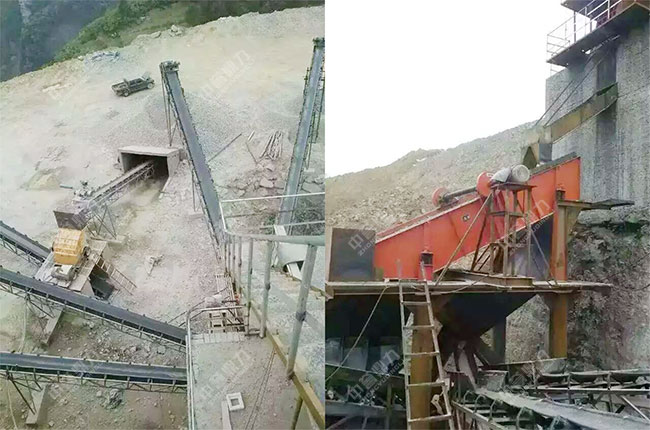該產(chǎn)線依山而建,利用山體的坡度,將原料直接送進(jìn)主破碎機(jī)內(nèi)進(jìn)行粗碎,粗碎后的物料經(jīng)過篩分后,再進(jìn)入二破設(shè)備內(nèi)進(jìn)行整形中細(xì)碎,生產(chǎn)出來的物料經(jīng)過篩選分級(jí)后輸送至相對(duì)應(yīng)的成品料堆。