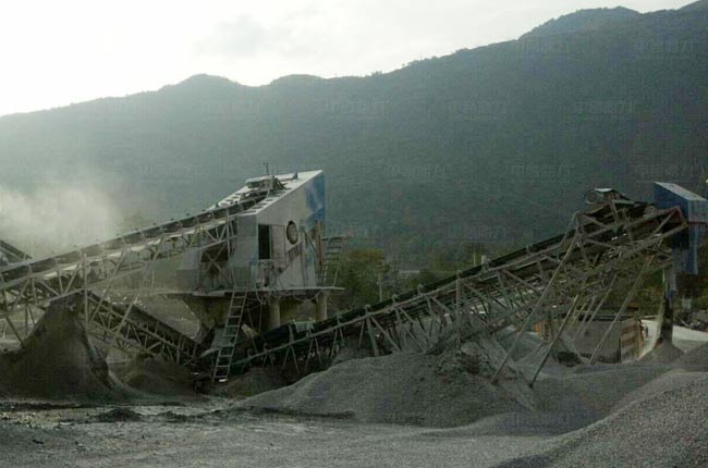 時產350噸青石制砂生產線根據原料大小,工藝直接采用進料粒度小于230mm的DLZSJ1218,可直接將物料細碎制砂,出料粒度可在0-10mm間根據需求調整,工藝簡單,維護方便。