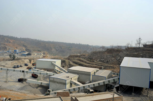 該項目主要破碎石灰石物料,一天可以生產6000噸左右的砂石骨料。中譽鼎力為其設計了PCZ1615重錘破、ZG1528給料機、3YKZ3070振動篩和2YKZ3070振動篩,以達成時產700噸的生產需求,整個生產線采用密閉式設計,防止揚塵污染。