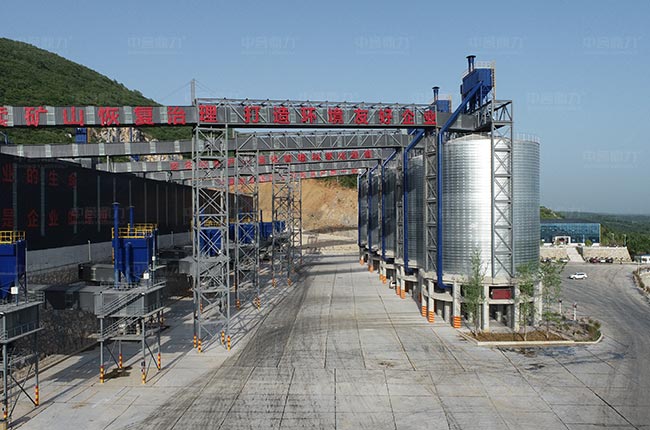 3、5大鋼板儲料倉和一個大型廠房,成品料封閉堆放,通過散裝機和傳送皮帶機、結合石料銷售系統、自動裝車系統實現石料銷售環節智能化、數字化。