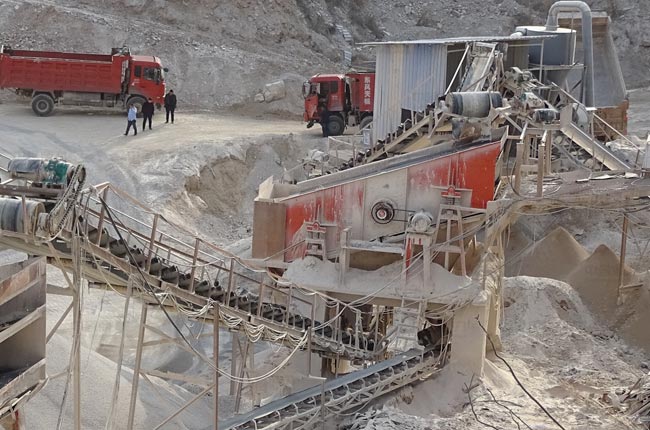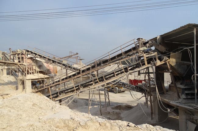三安商貿(mào)時產(chǎn)300噸小型石子生產(chǎn)線2016年投產(chǎn),選用了PC1216錘式破碎機(jī)做二破破碎石灰石,有兩臺3層振動篩篩分05、12、13、24等不同規(guī)格的石料。