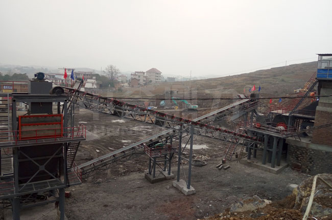 湖南衡陽鑫利石業250噸的固定式碎石生產線是17年3月投產,生產線設計的是兩臺錘式破碎設備,主要加工12石子、13石子、05石子等碎石子。