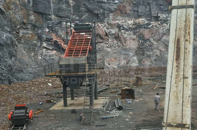 該項目是中譽鼎力提供設備并安裝,設備10月16日配送進場,預計12月18日竣工,是一條200噸石子破碎制砂生產線。