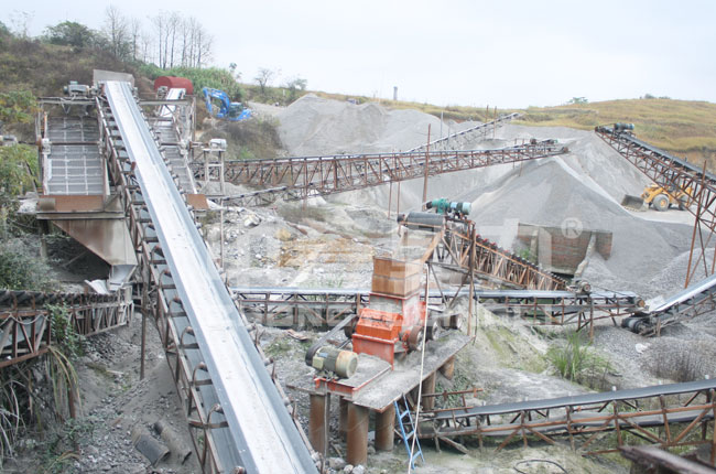 項目是處理石灰石料,要進行破碎生產不同規格的石子,同時還要生產部分沙。中譽鼎力為其配置的是“錘式破碎機+雙轉子制砂機”。