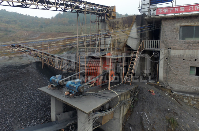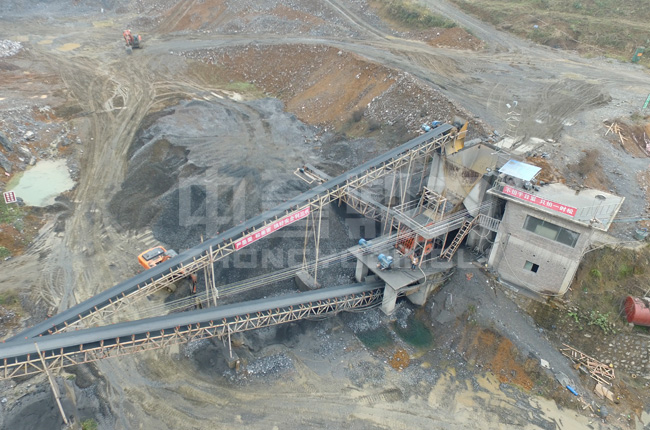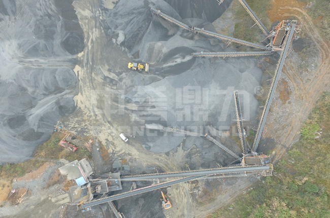 此項目建設較早,為2013年建設并投產,是一條露天石灰巖破碎加工生產線,通過現場實拍圖片可以看出,生產線是由喂料設備、錘式破碎機、振動篩、皮帶機組成。這個生產線工藝簡單,分級明確,可同時加工出多種不同規格的成品料。