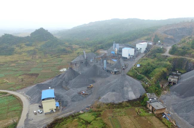 依照項目地勢高低設(shè)計,整個破碎到成品料流程呈階梯狀,原料儲存空間大,銷售方便。