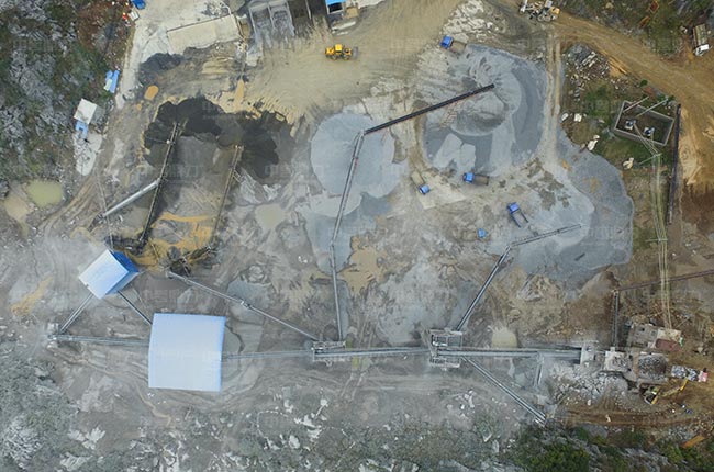 兩道篩分:PCZ重錘反擊式破碎機破碎后的石料,通過皮帶機送進頭道曬分機組進行篩分,會篩分出混合料,成品骨料及需要返回破碎機的石料;混合石料篩選通過二道篩機篩分,符合要求的通過成品皮帶機送至成品料堆;