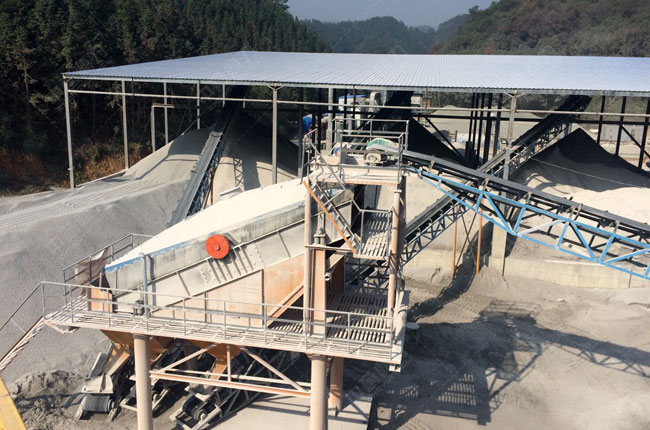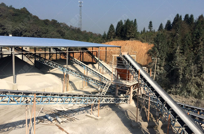 江西景德鎮(zhèn)時產(chǎn)200噸石子破碎生產(chǎn)線,加工的石料用于瀝青拌和站,同時進行了環(huán)保設(shè)計。