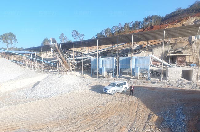 2、兩次破碎工藝,工藝簡單,還配置有收塵器、噴淋、灑水等環保裝置,減少粉塵飛揚。