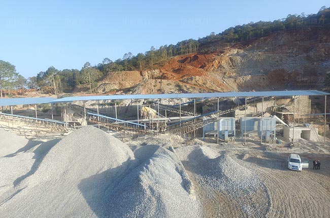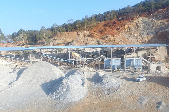 四川涼山時產1000噸砂石骨料生產線選用了PCZ1620重型錘破機+PC1220錘式破碎機+配套設備,加工后的碎石料有兩道篩分環節,生產的骨料粒型好、規格多。