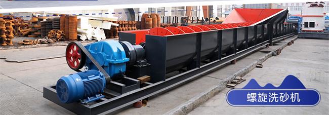 螺旋洗石子機的構成有槽體、減速機、電動機、軸、螺旋葉片、支架,歷經對帶動螺旋葉片對砂石原料做出攪拌,將原料和水做出攪拌,在機械的上端進水,而原料慢慢被篩選出來,從排礦口排出,達到了對物料的清洗作業。
