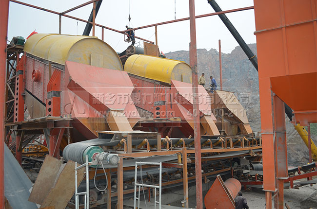 將不同產量、不同層數的振動篩布置在不同的篩分環節,并采用并列、前后等不同的布置方式,也就是我們常說的工藝設計,選擇正確的工藝布置也可提升砂石篩分系統生產效率。例如,在破碎設備的上段我們可事先布置一臺單層振動篩設備,對原料中的泥土、雜質進行預先篩分,這樣不僅可提升破碎機的產能,對于物料的后期篩分也有很大成效。在破碎機和制砂機的下段我們則可以將振動篩進行并列布置,這樣的布置可使得篩分系統滿足破碎設備對于篩分的產量要求,同時也使得整個生產線布局更加緊湊、合理。