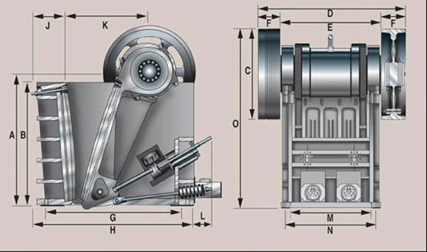 4、鄂式碎石機進出料口均采用安裝有墊式裝置系統,用戶可根據實際生產需求合理調整排料口大小,調整范圍大,可滿足用戶的不同生產需求,設備使用靈活性強。