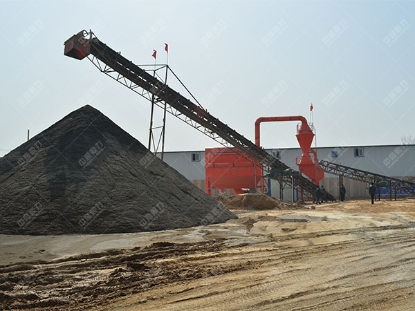 相對干式制砂加工技術,濕式制砂只是多了一步成品砂淘洗篩選的過程,具體該濕式套制砂機主要包含有顎式破碎機、運輸機、圓錐碎石機、碎砂機、洗砂機、圓礦山振動篩 等供電機械,具體制砂技術過程為:礦物質通過由料堆進入振動喂料機,振動喂料機將巖石均勻的送入顎式破碎機進行粗碎,粗碎后的巖石經皮帶運輸機進入圓錐碎石機進行細破,細破后巖石由運輸機送至礦山振動篩 進行篩選,不符合碎砂機給料粒度的被返回細顎破繼續破碎,符合碎砂機給料粒度的巖石被送入碎砂機進行破碎,破碎后的巖石被送至礦山振動篩 進行篩選,粒度大小不符合要求的巖石被返回碎砂機繼續破碎,符合要求的巖石被送至洗砂機進行清洗,清洗后的巖石由運輸機送至成品堆。