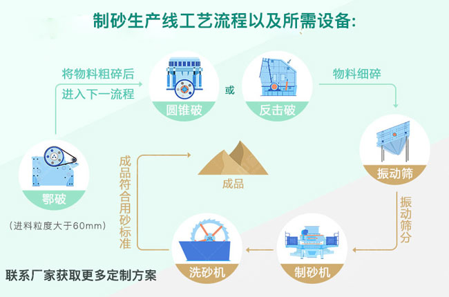 搭配機(jī)械:PE750*1060顎破、GYS400圓錐碎石機(jī)、VSI1140制砂機(jī)械、4YK2460篩機(jī)分機(jī)、3020洗石機(jī)