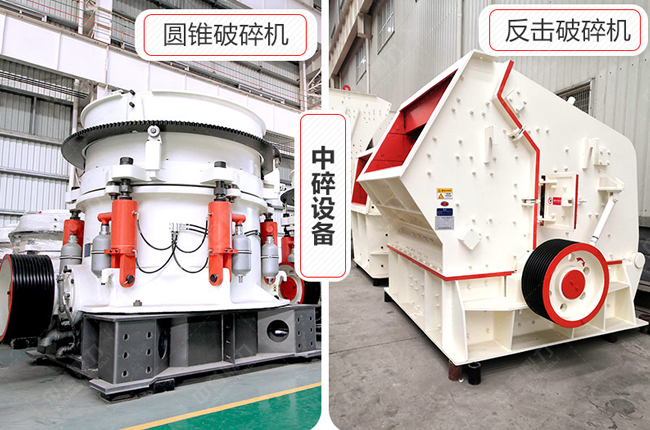 2、圓錐破碎機,硬物料克星:圓錐破碎機用于硬料的中碎、細碎,如:花崗巖、鵝卵石等,該設備噪音小、自動化程度高,價格相對較高,但易損件壽命長,后期維修成本低。