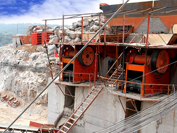 粗碎機械,原始石頭通過料堆,由振動送料機均勻喂料,運輸到pe鄂破機進行粗碎,通過粗碎后的石頭和由振動送料機篩選分級的細小石頭由帶式輸送機一起運輸到中轉料堆。