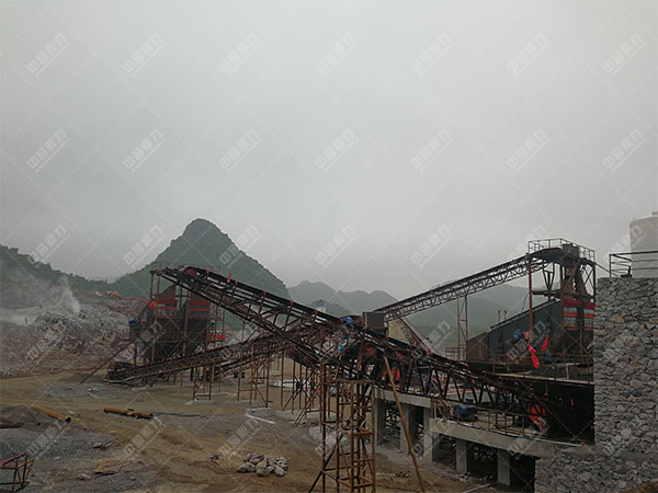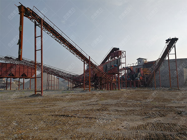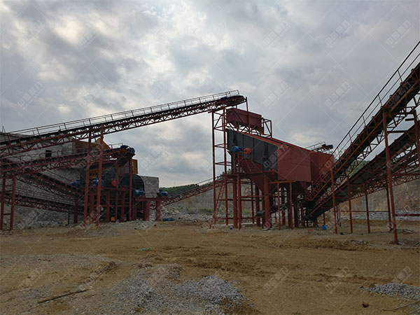 沙石生產線中的石頭由振動送料機均勻地送回重型鵝卵石制沙機進行粗碎,粗碎后的石頭由皮帶運輸機送入到沙石生產線中的制沙機進行深度破碎,整型破碎后的石頭被運輸到洗沙機進行洗滌,符合成品粒度要求的石頭被送入砂石洗選設備清洗,清洗后由成品皮帶運輸機輸出即為成品;未符合成品粒度要求的石頭從篩機返回制沙機再次破碎,形成閉路多次循環,成品粒度可按客戶的要求進行組合和分級,假如選擇干法生產方案,可配置粗細粉分離機和除塵設備。